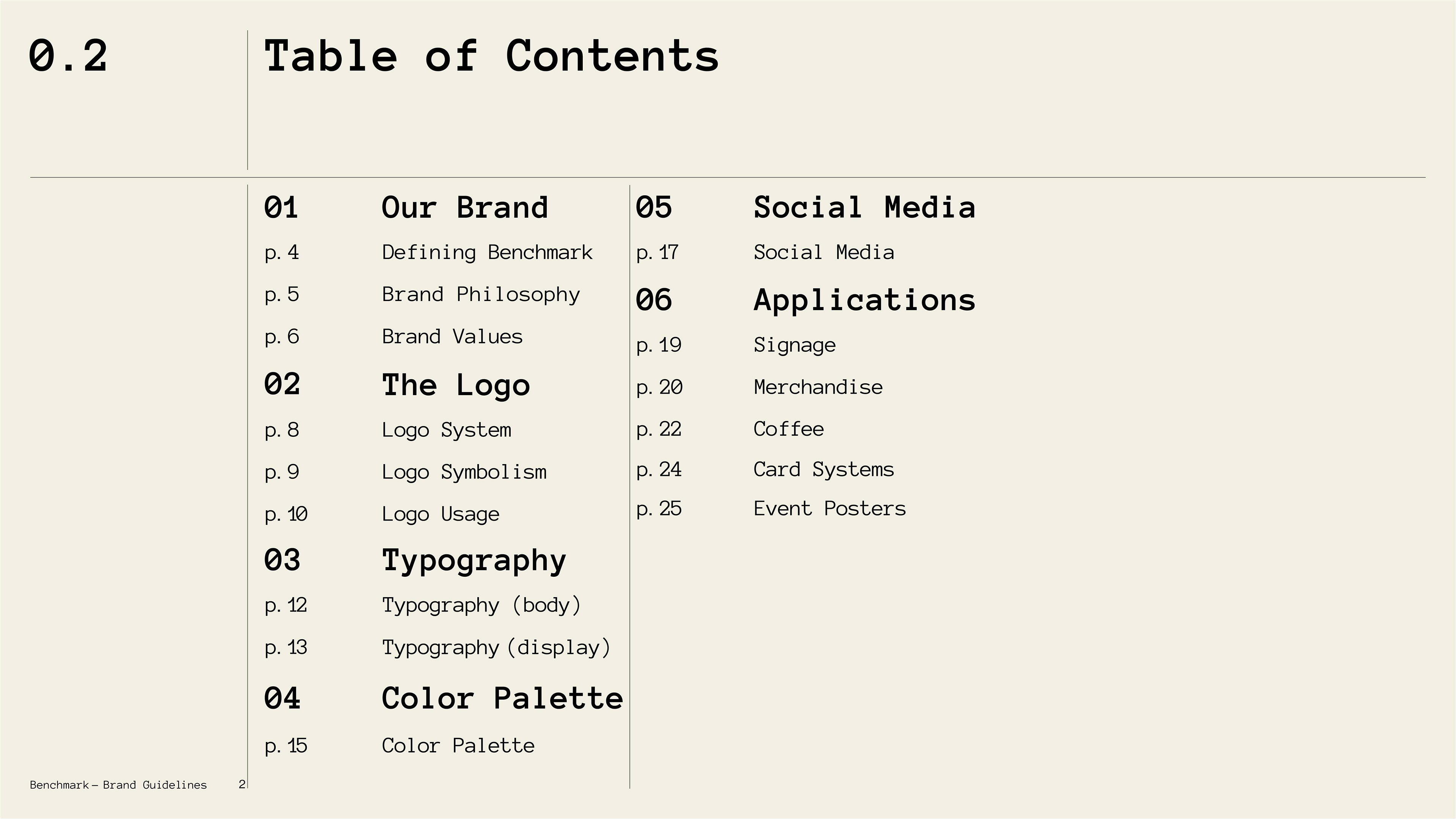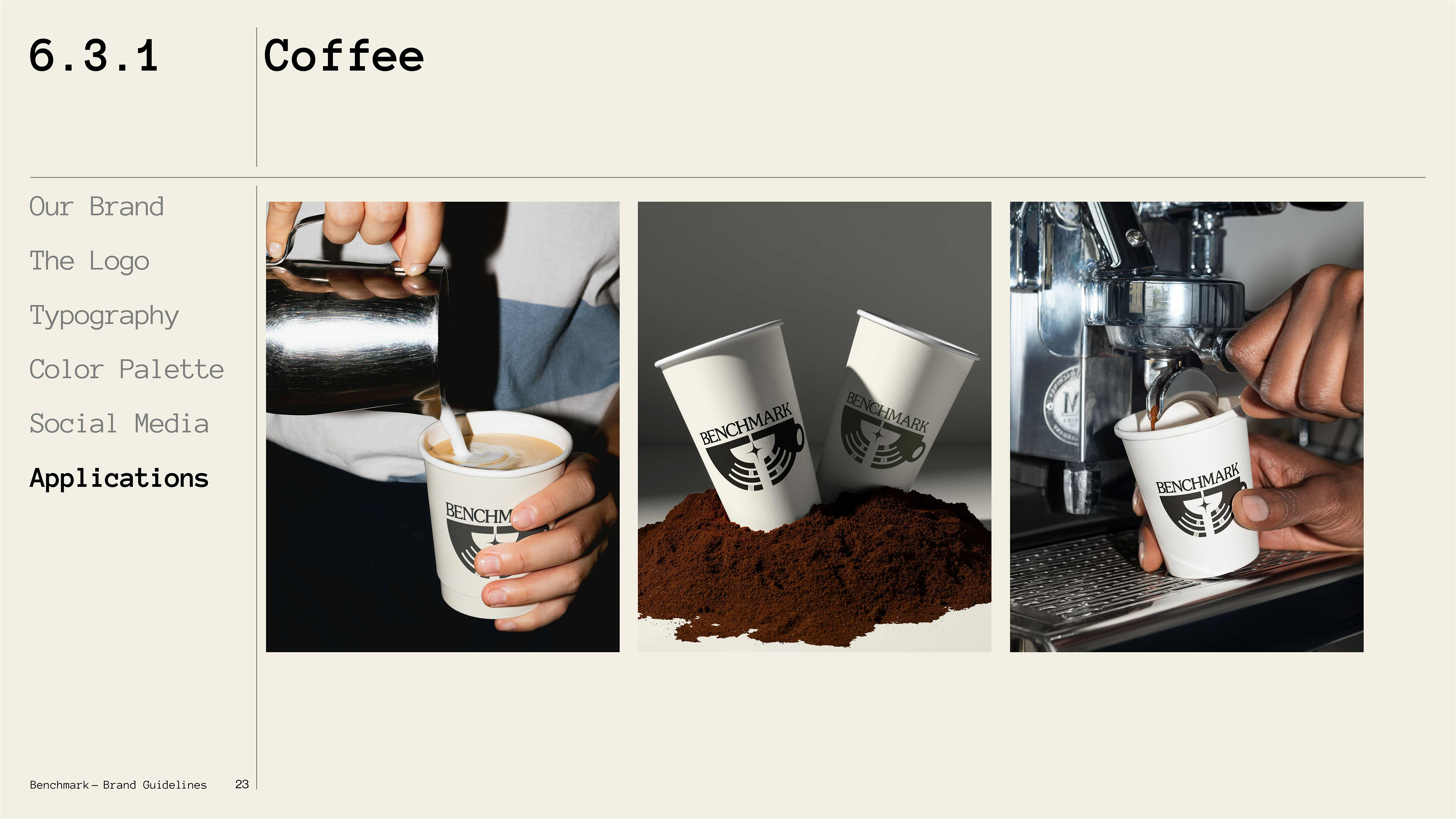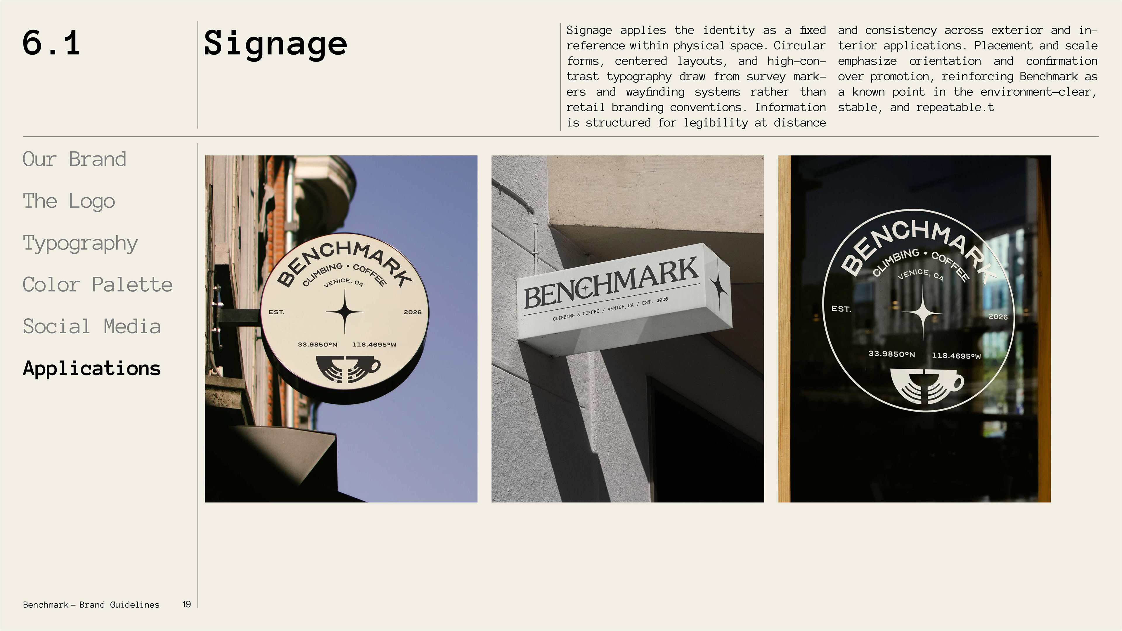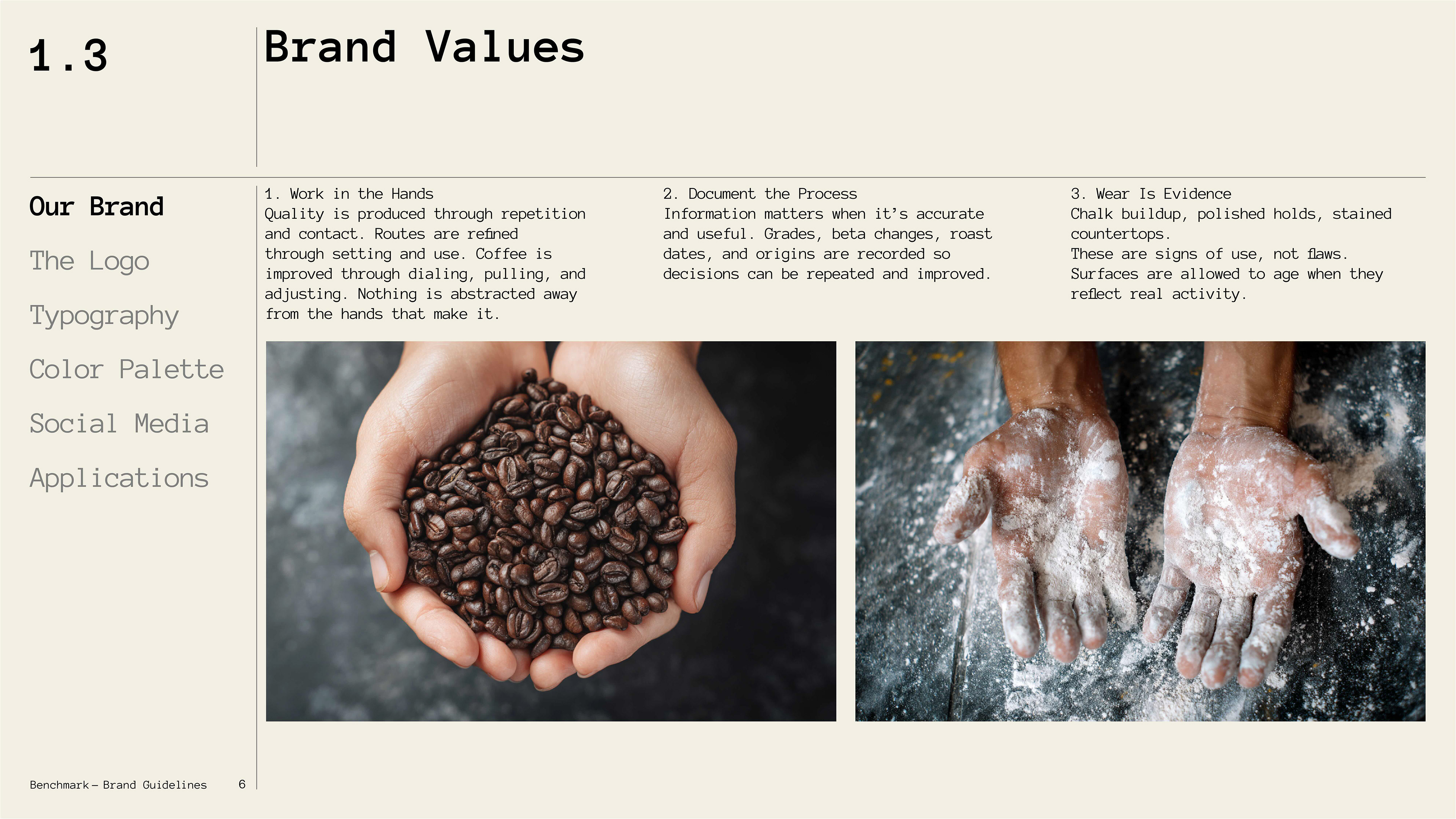A climbing gym and specialty coffee shop brand exploring the intersection of physical craft and archival documentation. Benchmark treats routes and coffee as artifacts worth preserving, challenging the disposable, algorithmic aesthetic of modern fitness culture through deliberate design, analog textures, and institutional permanence.