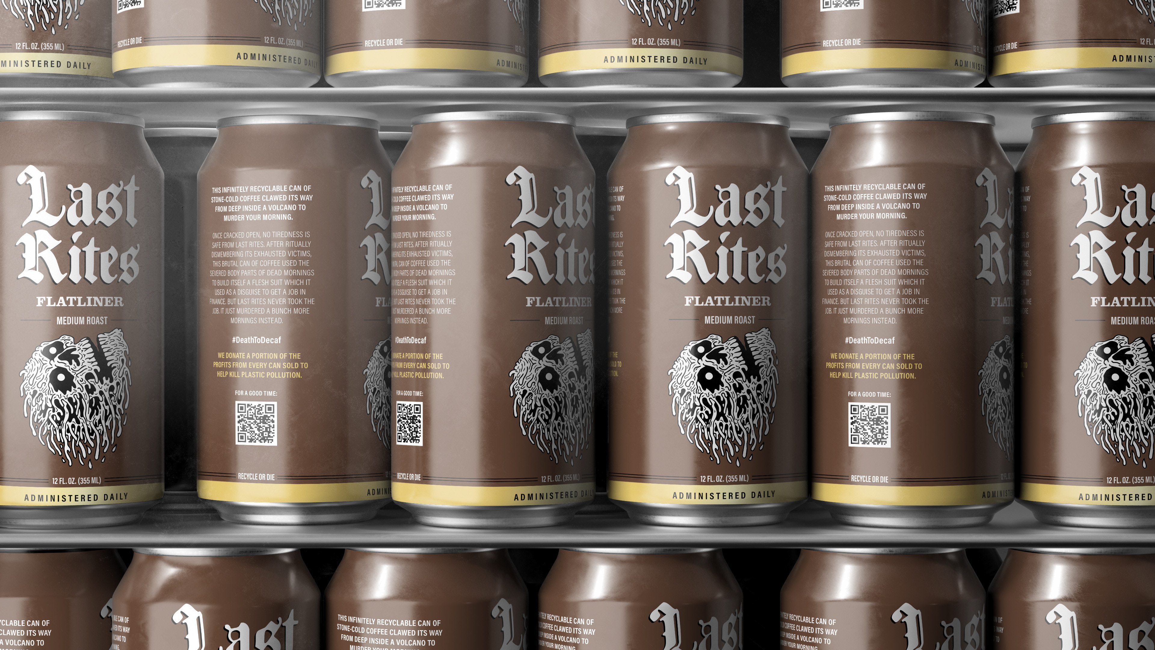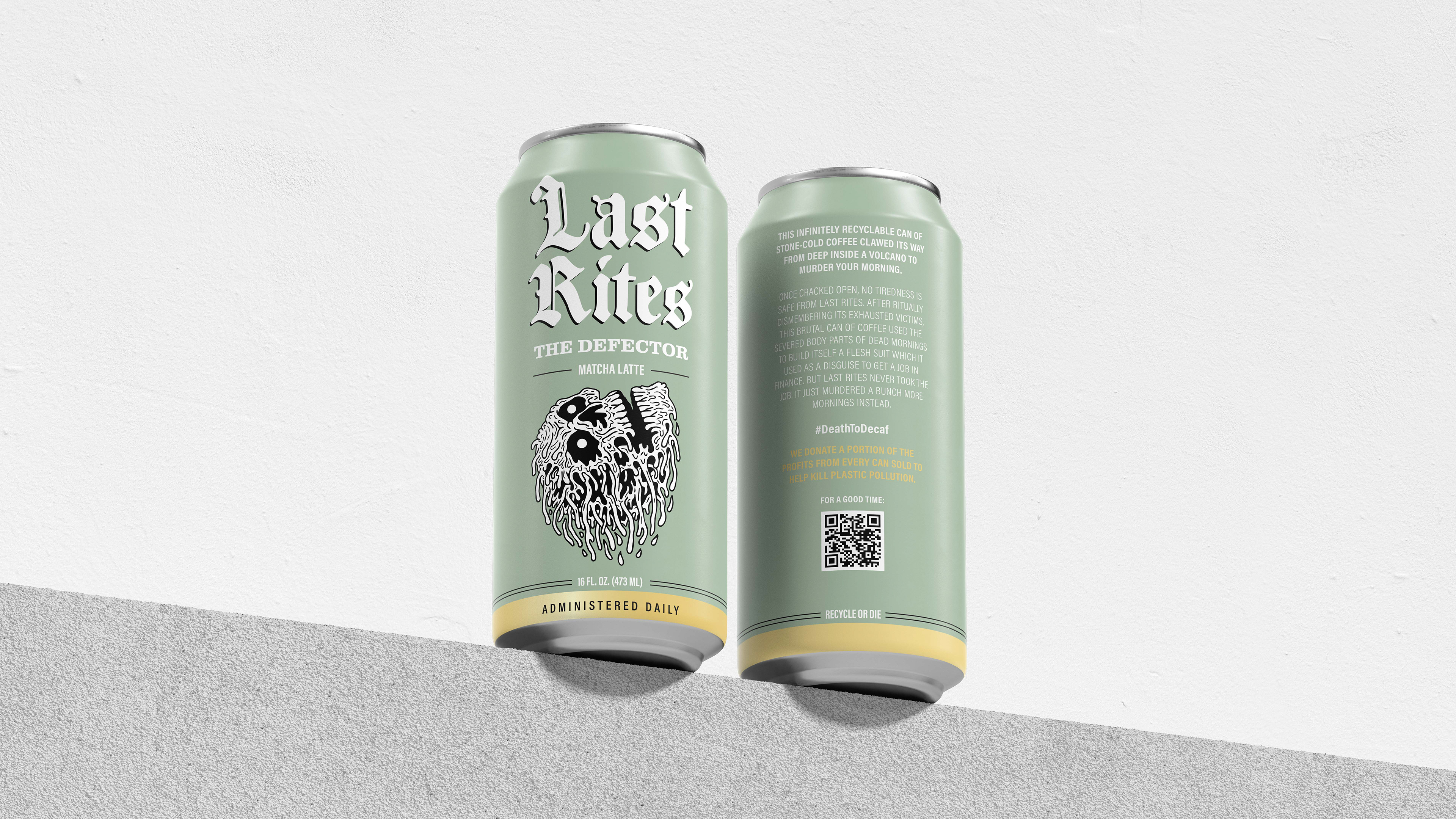 A canned coffee line built on a single truth: every morning is a small death, and Last Rites is the ritual that gets you through it. The extension applies Liquid Death's core sensibility, death as a metaphor for the mundane treated with complete casualness, to the one daily ritual more universal than hydration. Where Liquid Death made water something people actually want to be seen holding, Last Rites does the same thing for the morning. Same consumer, same attitude, different beverage.